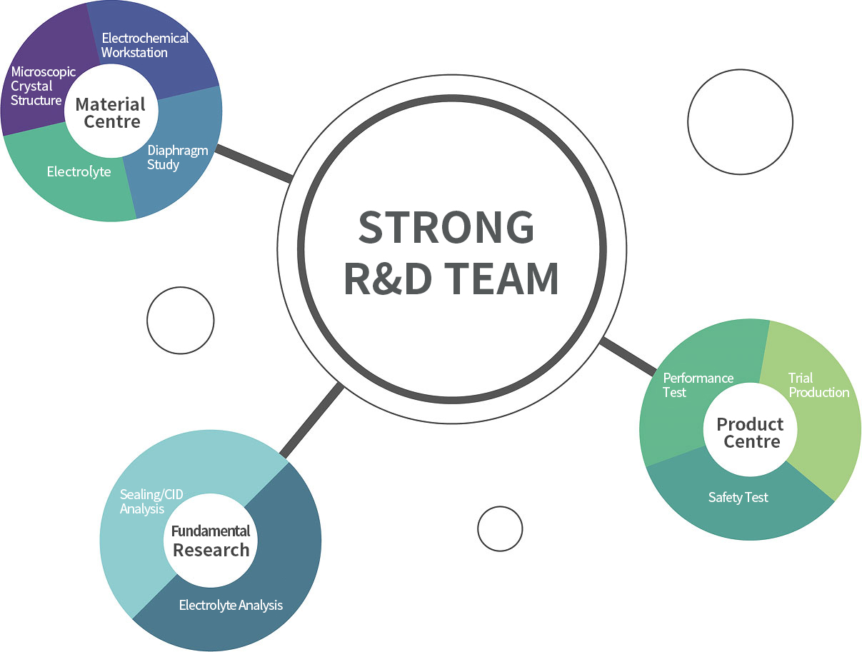 We have established first-class Li-ion battery research lab in China, and brought in advanced lab facilities, including imported Arbin Battery Test System, Apreo Field Emission Electron Microscope, Gas Chromatography Mass Spectrometry, Full-Automatic X-RAY Fluoroscopy Equipment, and a Li-ion battery pilot production line. The trinity R&D mode of technology, process and R&D personnel will complete the R&D tasks of the company.
